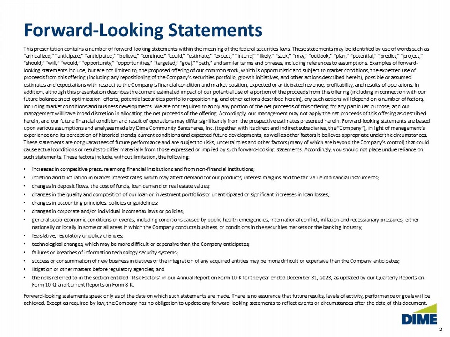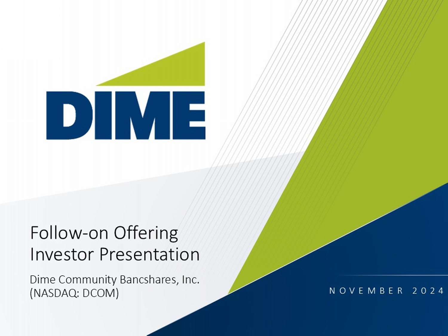 1 Follow - on Offering Investor Presentation Dime Community Bancshares, Inc. (NASDAQ: DCOM) NOVEMBER 2024